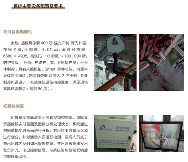 6、行車智控系統(tǒng):控制系統(tǒng)采用一體化模塊集成設(shè)計, 通過各子系統(tǒng)信號采集及圖像分析進(jìn) 行智能處理,快速準(zhǔn)確判斷各功能模 塊的異,F(xiàn)象,與主機PLC控制系統(tǒng) 通訊連接具備自動進(jìn)行報警、減速、斷電停車等功能,當(dāng)系統(tǒng)確認(rèn)發(fā)出信號指令后,控制系統(tǒng)和行車PLC連鎖進(jìn)行斷電處理,避免事故發(fā)生。
